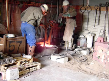 Starting the lift of the crucuble of molten bronze fro the furnace